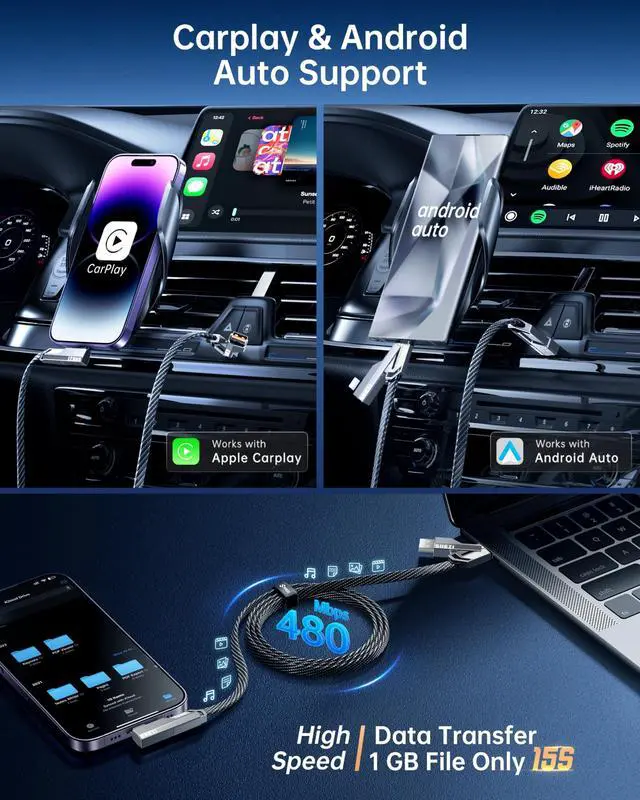 Note: USB 2.0 Cable do not support video transfer ^^ Support Apple Carplay & Android Auto: Our usb c cable can work with Apple's official CarPlay and Android Auto System. Keeps stably connected during driving journey. Before using CarPlay, please confirm whether your vehicle supports the CarPlay system ^^