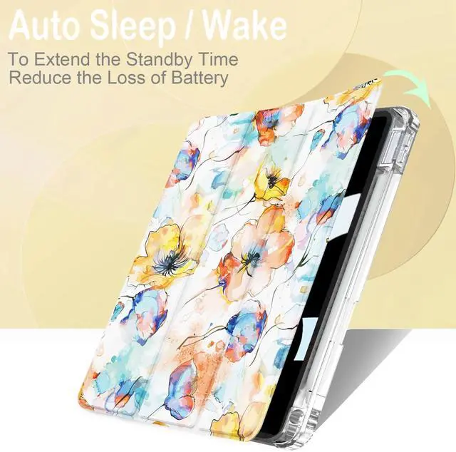 Number: A2696/A2757/A2777). Not compatible with any other devices. Please confirm the model number before purchasing. ProtectionOur special printing process makes vivid pattern. Anti-Scratch PU leather with Clear Transparent back surrounded by Soft TPU cover are lightweight and durable to protect your iPad A16 11th / 10 Gen from scratches and shocks while showing your iPad A16 11th / 10th Generation color. Tri-Fold Standing & Auto sleep/wakeThe Tri-Fold front provides you two standing positions for viewing or typing needs; Front Cover can automatically puts your iPad A16 11th Generation / 10th Generation to sleep/wake when the lid turn on/off. Pencil HolderInner pencil slot provides an Easy Access and Secure place for your 1st generation/USB-C Pencil.