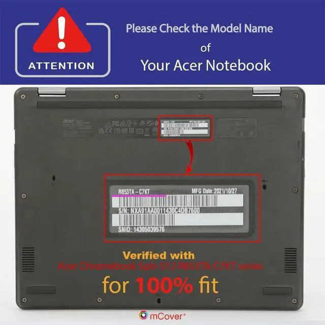 NOT compatible with: 11.6" Acer Chromebook Spin 511 R751T / R752T / R753T series laptops 11.6" Acer C710 / C720 / C721 / C730 / C731 / C732 / C740 / C771 series Chromebook laptops Acer Chromebook 11 CB3 and Chromebook 13 CB5 series laptops any other Acer/non-Acer laptopsFor dimensions of your Acer Chromebook Spin 512 R853TA series laptop, please go to the manufacture's website athttps: //www. acer. com/us-en/chromebooks/acer-chromebook-spin-512-r853ta-r853tna/pdp/NX. A91AA. 001iPearl Inc is proud of being an "A+"-Rating BBB Accredited Business with 153, 000+ reviews and 99%+ positive feedbacks at. iPearl offers protective cases for ALL current MacBook & Chromebook models and selected popular PC laptops, protecting 5, 320, 000+ Mac ^^ PC ^^ Chromebook laptops and iPad ^^ Kindle ^^ Nook readers around the world so far! (Updated on 6/22/2023)