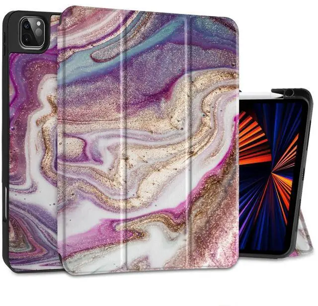 DONGKE Case for iPad Pro 12.9 inch 6th Generation 2022, Built-in Pencil Holder + Trifold Stand + Auto Wake/Sleep + Protective Cover for iPad Pro 12.9 5th/4th/3rd Gen- Pink Marble