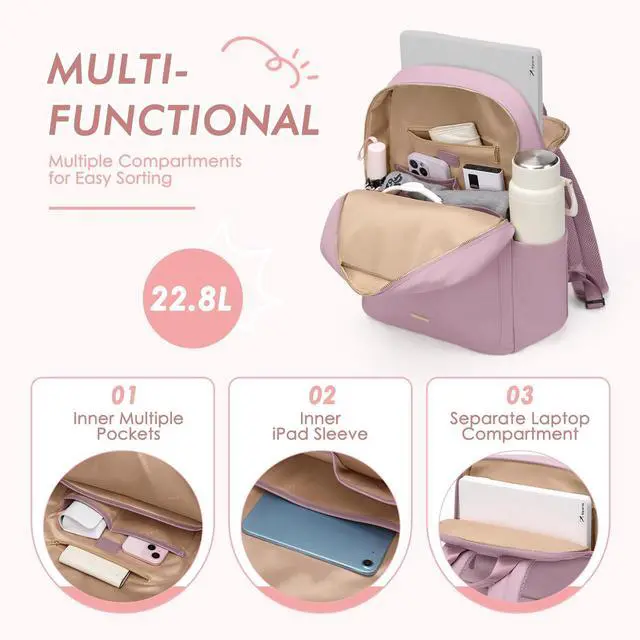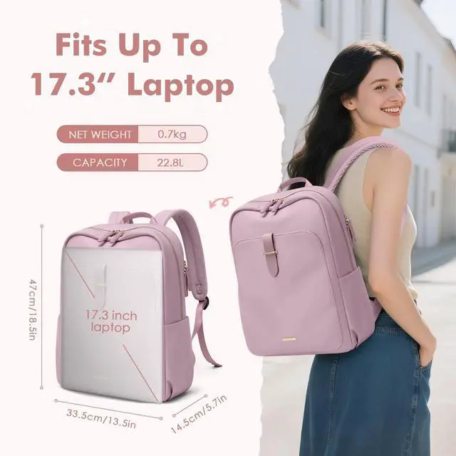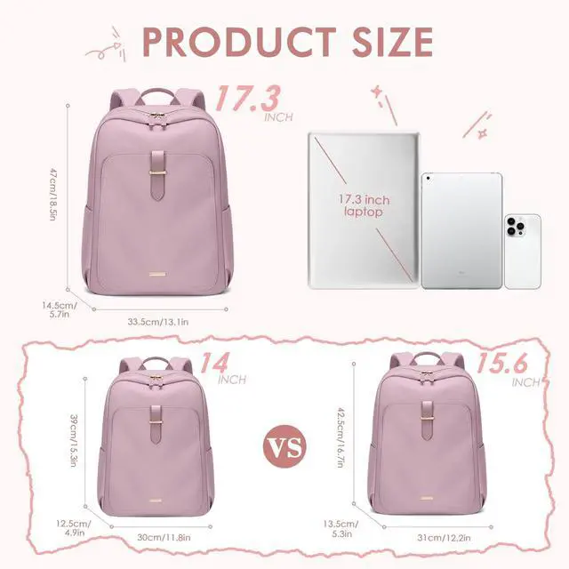 Backpack Dimension 17.3 -in: 33.5 *47* 14.5 cm/ 13.19 * 18.5 * 5.71 inch, Large capacity with 24L ^^ Upgraded FabricThis laptop backpack has been upgraded with fabric. It is made of more durable splash-proof Oxford fabric and high-quality super-fiber synthetic leather, and the stitching has been strengthened, allowing you to carry it with greater peace of mind anywhere. ^^ Upgrade DesignThis upgraded travel backpack not only features multiple compartments and pockets, but also has a hidden anti-theft zipper pocket inside. Compared with other daily backpacks, this upgraded version has more practicality. Let it be your daily backpack! It can hold daily necessities such as laptops, ipads, headphones, books, clothes, water cups and umbrellas, and all of them can be neatly organized. ^^ Applicable OccasionsThe laptop backpack can actually be applied to multiple scene switching, daily/hiking/business/climbing/traveling/college can be carried, which truly realizes the role of a backpack with multiple functions. ^^ Quality Assurance Enjoy worry-free shopping with GOLF QUALITY. We stand behind the quality of our products and offer a comprehensive warranty.