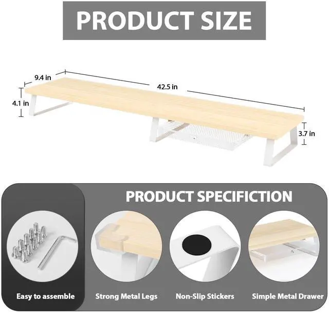 Assemble: The board and frame of our monitor stand riser are meticulously designed with pre-drilled holes, ensuring effortless installation. We have included all the necessary tools, parts, and detailed instructions in the package, making the installation process a breeze. With our user-friendly instructions, anyone can easily set up the monitor stand in just 4 minutes ^^