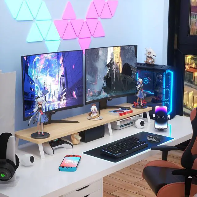 Computer Monitor Riser: Elevate your monitor or computer to an ergonomic height, promoting an ideal sitting posture and reducing eye strain, neck stiffness, and back pain. This monitor desk riser helps you maintain comfort and productivity throughout the workday by supporting a healthier workspace setup ^^ Monitor