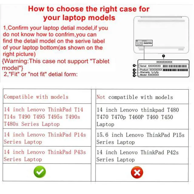 This case not a universal laptop bag, each case are only suitable for some especially laptop models. It is especially designed for 14" Lenovo ThinkPad T490 T495 T495s T490s T480s T470s T460s T450s/Lenovo ThinkPad P43s/Lenovo ThinkPad T14/Lenovo ThinkPad T14s/Lenovo ThinkPad P14s/ThinkPad T14 Gen 2/ThinkPad P14s Gen 2 & Acer TravelMate B5 14 TMB514-31-C60G Series Laptop.