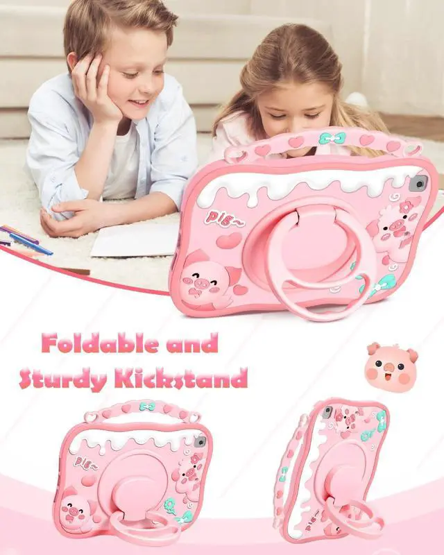 Release 2017 (Model: A1709A1852A1701). It is not compatible with other models. Please check the model number on the back of your iPad before purchasing. ^^ Material QualityThe durable for iPad 9th Generation/8th Generation/7th Generation/Air 3rd Generation/Pro 10.5 inch case Made of soft and lightweight high-quality silicone and easy to clean, this girly for iPad 9th/8th/7th/air 3rd/Pro 10.5 protective case features an shockproof and drop proof design that covers the screen surface, back, and sides of the iPad, effectively protecting the screen, camera, and body from scratches and falls. ^^ Friendly DesignFor iPad 9/8/7/air3/Pro 10.5 in case girls circular handle design is suitable for small hands, making it easier for them to grip. The iPad 9th/8th/7th/air 3rd generation/Pro 10.5" case with stand can be rotated 360 and flipped 180 to support or hang at different angles, unleash your hands. Adorable heart-shaped tote design that can be carried by hand or hung, offering multiple carrying options for More convenience in your daily use. ^^ Built-in Pencil HolderThe precise hole cutting and port perfectly match for iPad's functions, allowing easy access without removing the protective case. This pig tablet case for iPad 9/8/7/air3/Pro 2017 case also features a built-in pencil holder, providing a convenient place to store and carry your with Apple Pencil.