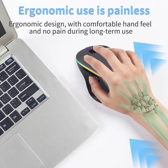 ^^ **Type-C Rechargeable**: Equipped with a built-in lithium battery and a convenient Type-C charging port, this mouse supports fast charging via the included Type-C cable. A blue light indicates charging status.