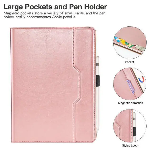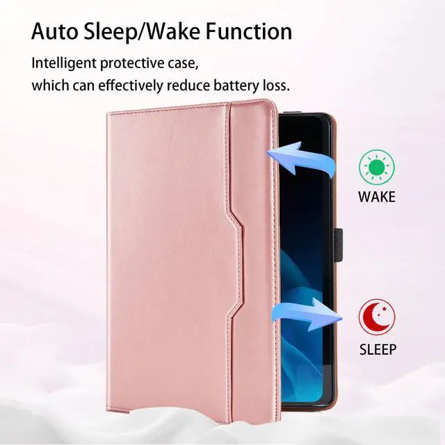 PROTECTIVE: Premium PU leather and soft TPU case provides full body protection against scratches, shocks, drops and bumps. It features an elastic band closure that keeps the tablet secure when closed and protects the screen and built-in cards from falling out.