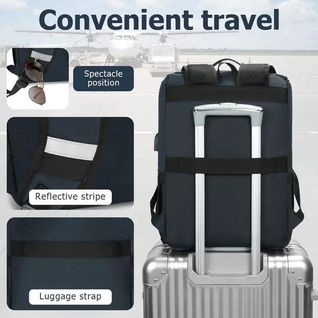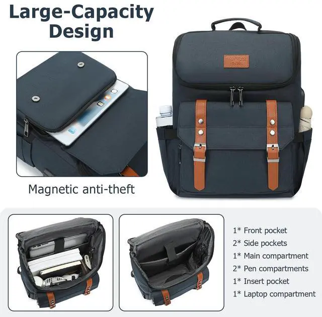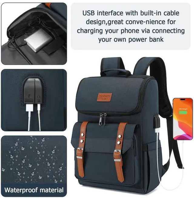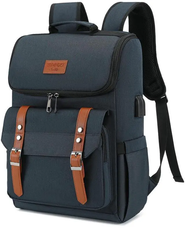 YALUNDISI Laptop Backpack Features: Stylish Backpack with charge port. USB Charger port is a convenient external connection, it offers an easy access to charge your devices. Very handy and fashion. Hook up your phone and be on the goHeadphone Jack is convenient for you to listen to favorite music hands free while walkingMade of High Density and Water Repellent Polyester Fabric, not easy get wet and ensure long lasting usage. Great lightweight backpack for overseas travel and fit under an airplane seat, good partner for your tripEveryday/weekend slim backpack day bag packing compartment has lots of pockets roomy for daily necessities & tech electronics accessoriesMulti-Compartment and
