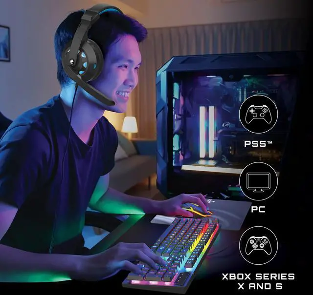 COMPLETE RGB GAMING EQUIPMENT: This PC gaming bundle gives you the tech accessories you need with eye-catching RGB light trim. It includes a premium RGB keyboard, a wireless mouse, a mouse pad, and an adjustable gaming headset with a microphone. All these components have a plug-and-play installation right out of the box. ^^ RGB GAMING MOUSE & MOUSE PAD COMBO: Our cordless RGB gaming mouse features an extra-sensitive 1, 200 DPI and an ergonomic design for extended use. It has 3 buttons, a finger rest, and a hyper-fast scroll wheel for comfortable and precise gaming. It pairs perfectly with the smooth-surface mouse pad, which allows smoother movement and protects your desk from damage. ^^