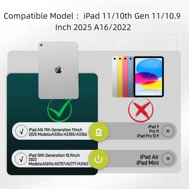 Model Compatibility:This keyboard cover is compatible with iPad 10th Generation (2025/2022), models include A3354, A3355, A3356,A2696, A2757, A2777, A3162. You can check the model number before purchasing to make sure you get the correct size tablet keyboard case.(Products do not include tablets and stylus!)