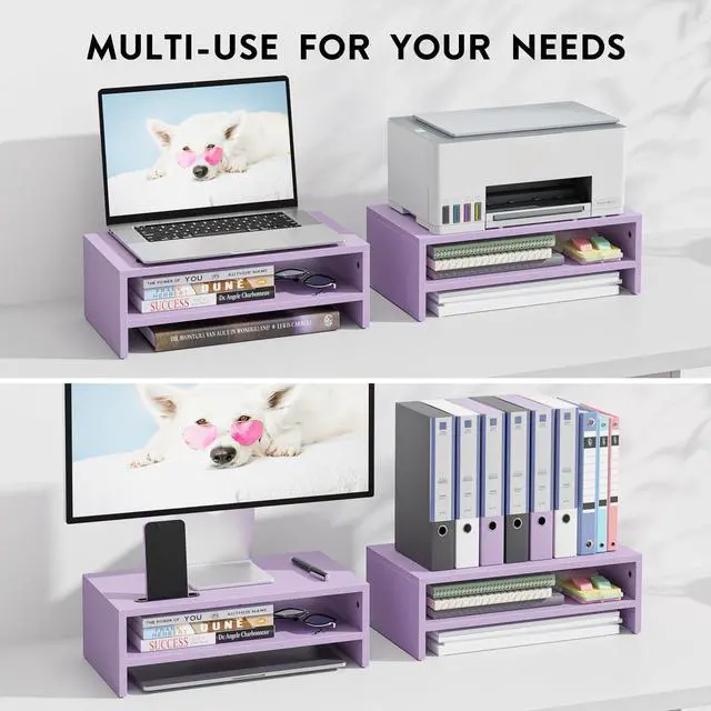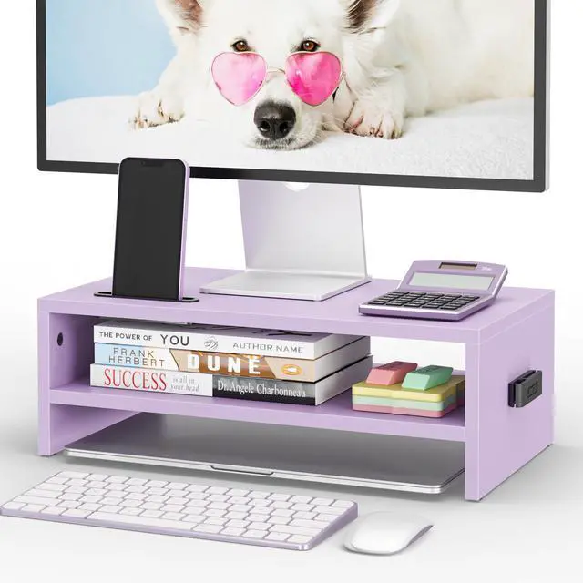 REMIUM ECO-FRIENDLY MONITOR STAND - Crafted from high-quality MDF wood, this eco-friendly monitor stand ensures durability and sustainability. The smooth white finish complements any office or home workspace, adding a touch of elegance ^^ ERGONOMIC MONITOR STAND FOR REDUCING STRAIN - The 5.6 -inch height of the monitor stand helps position your screen at eye level, reducing neck, back, and eye strain during long working hours ^^ MONITOR STAND WITH STORAGE ORGANIZATION FEATURES - This two-tier monitor stand provides ample storage for your laptop, keyboard, mouse, and other accessories. The built-in cellphone holder and cable management slots help keep your desk tidy and organized ^^ EASY TO ASSEMBLE MONITOR STAND WITH STABILITY ENHANCEMENTS - Simple assembly instructions ensure a quick setup, while soft rubber feet keep the monitor stand stable and protect your desk from scratches ^^ MONITOR STAND WITH LIFETIME CUSTOMER SUPPORT - Enjoy 24 Hour customer support with a commitment to your satisfaction.