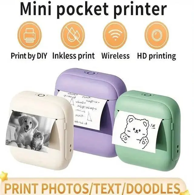 Parents can use this mini portable printer to organize shopping/to-do lists, work plans, and morea great tool for all ages. ^^ This wireless mini photo printer comes with a mini thermal printer, a charging cable, and a roll of regular thermal paper ( 2.2 inches wide). This great set is large enough for daily use and helps you save money.