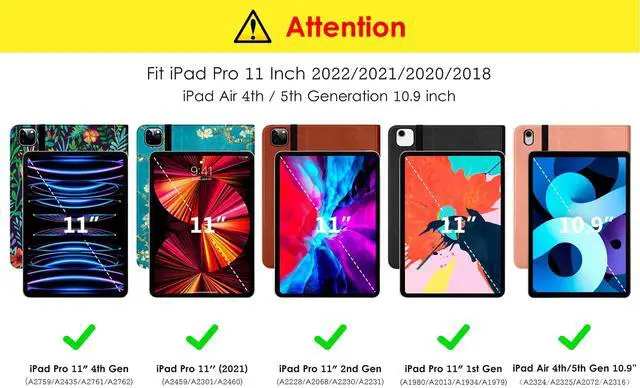 Released Tablet(Model Number: A2759/A2435/A2761/A2762/A2377/A2459/A2301/A2228/A2068/A2230/A1980/A2013/A1934), Not compatible with any other iPad model. ^^ Exterior is made of premium synthetic leather, lined with microfiber provide full protection for your iPad. ^^ Front cover have Auto Wakes/Sleep function, external elastic band enhances magnetic closure (reduces battery drain). ^^ Built-in leather hand strap (one-handed operation), multiple horizontal bracket angles for comfortable watching movie or typing. ^^ Front document card pocket to keep notes, cash, cards.