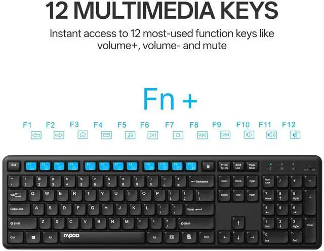^^ Long Battery LifeYou can go up to 12 months for the keyboard and mouse without the hassle of changing batteries - like other typical Rapoo products, this quiet wireless keyboard and mouse combo also adapts the latest low-power technology.