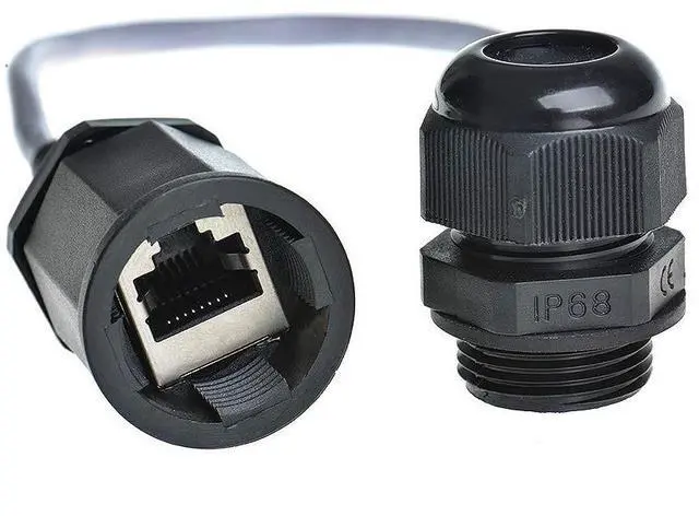 The male to female RJ45 ethernet lan cable coupler is used to turn the standard CAT5 patch cord into the waterproof type for the ethernet connecting in the harsh industrial or outdoor environments. A gasket seal provides optimum protection from moisture and other contaminants with an IP67 rating. Using the standards based RJ45 connection system insures compatibility with existing hardware.