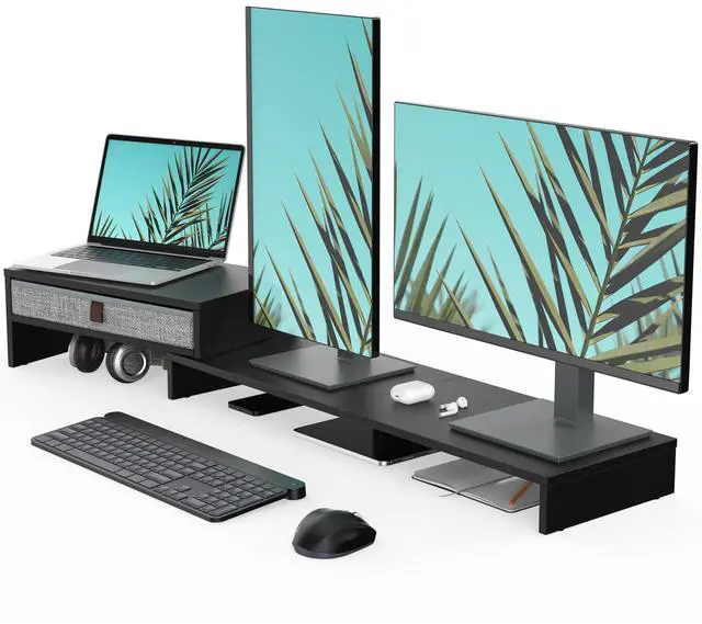 Monitor Stand Riser for 2-3 MonitorsOur computer stand is longer than others and very practical. It can be a monitor/computer stand, printer stand, Laptop Stand. It will be a good helper in your life and office. ^^ Ergonomic Design Stand for Desk Adjustable Direction,