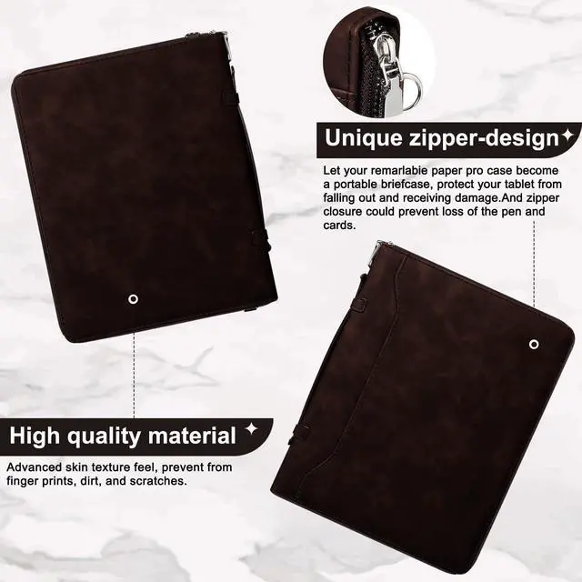 ^^ HANDHELD-BRIEFCASE DESIGN: Let your remarkable paper pro case become a portable briefcase, protect your tablet from receiving damage, durable and extremely sturdy. And with the carrying shoulder strap, you could carry your remarkable paper pro conveniently when you are at work or outdoors. ^^ BUILT-IN PEN HOLDER & CARD SLOTS: Remarkable Paper Pro cover makes it easy to pull out and store your pencil, avoid falling out while walking. The Case's surface and inside store your cards, sticky notes and other paper. ^^