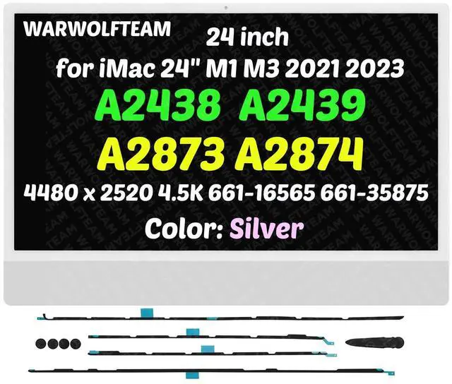 WARWOLFTEAM Compatible with iMac A2438 A2439 A2873 A2874 M1 M3 2021 2023 All in One Retina EMC 3663 3664 8206 8207 24" 4.5K LCD Display Screen Assembly LG204A-215(661-16565 661-35875 Silver)