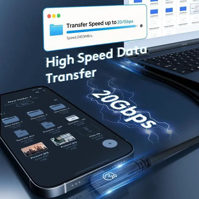 ^^ 20Gbps Data Transfer: The usb c 3.2 gen2 high speed data transfer cable cable can transfer HD movies, audio and 4K video signals, backing up 10GB files in less than 6-10s.