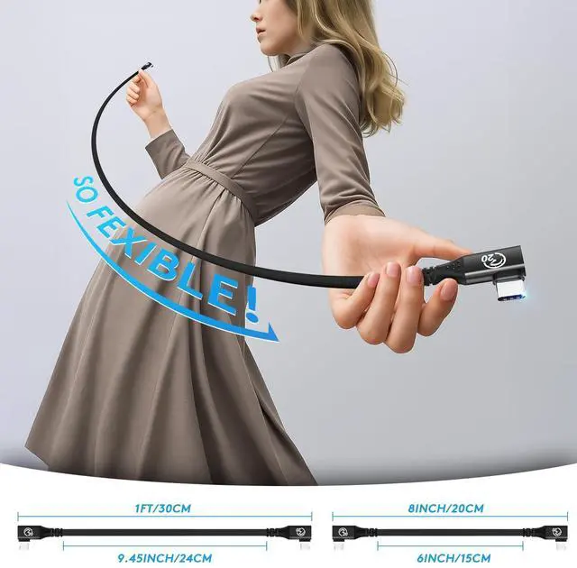 Upgraded Double 90 Design & Extremely Flexible & Soft: This right angle usb c to usb c 3.2 data cable fast charge with an innovative Dual 90 degrees " L " design, prevent typical wear, straining cable and connection issues and increase the life of the usb c fast charging cable. Features an ultra-durable yet flexible cable jacket for enhanced tangle resistance, knot-free charging sessions without the fuss.