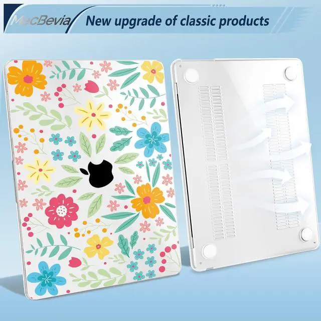 MecBevia Compatible with MacBook Air 13 inch Case, M4 A3240/M3 A3113/M2 A2681 (Released 2025 to 2022), Hard Shell, Keyboard Cover, Screen Protector, Webcam Cover & Type-C Adapter, Abstract Floral