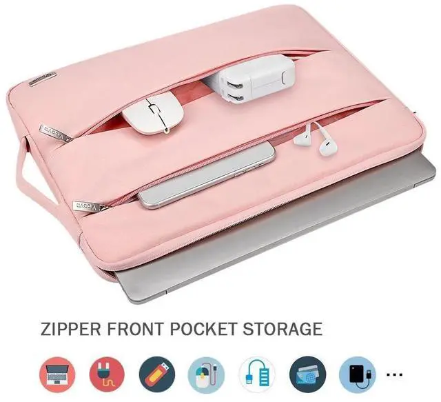 ^^ Super Protection: The rugged laptop sleeve cover has soft, thick and velvet lining, which buffer shake and impact, protect your notebook avoiding accidental hit and scratches. with a fully lined interior and interior border helps shield your device from damage, which provides excellent overall protection. The front 2 zip pockets, which are large enough to hold chargers, mobile phones, headphones, mice, USB drives, external hard drives, dongle and so on.