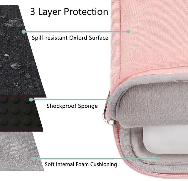 ^^ Easy to Carry: The deluxe laptop case has a retractable handle. The top handle instead of a side handle, so it makes laptop bag easier to get out of your backpack or suitcase. If you tend to drop things so the laptop case having a handle is very convenient, not have to hold it and worry about it slipping out of your hand.