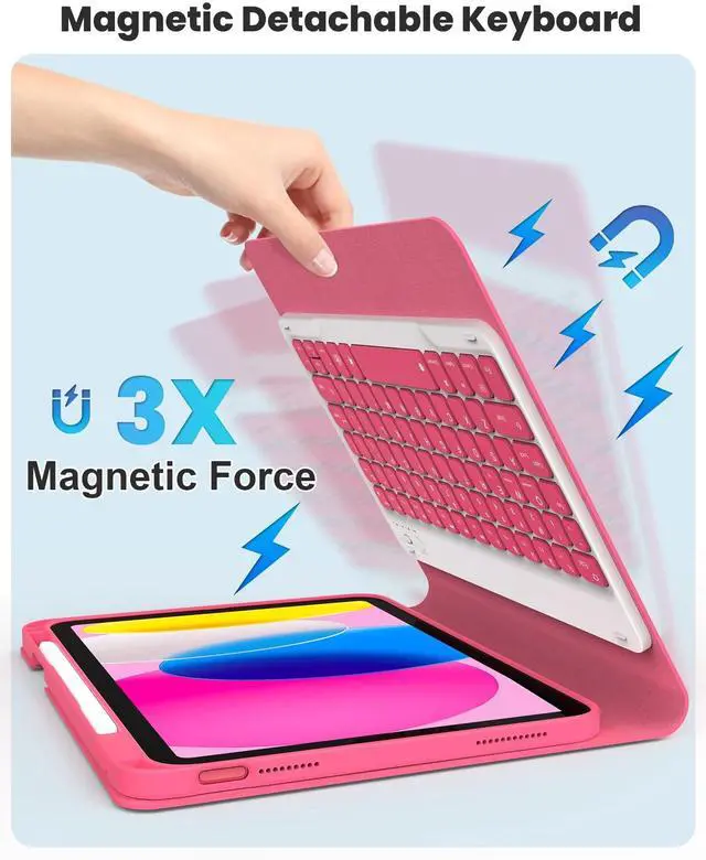 ^^ Magnetically Detachable Keyboard: Our ipad 10th generation case with keyboard features an enhanced magnetic design, providing three times stronger adsorption. Unlike ordinary detachable ipad keyboard that may slip off, our reinforced magnet keeps the keyboard for ipad firmly attached, ensuring stability while typing or carrying your iPad. Enjoy a seamless and worry-free experience without the keyboard accidentally falling off! ^^ 7-Color Backlit iPad 10th