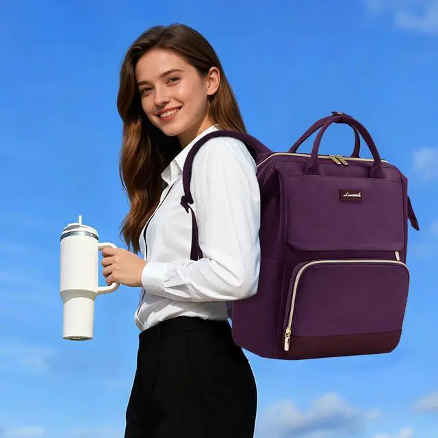 DescriptionLOVEVOOK Laptop Backpack for Women with Giant Tumbler Holder Pocket, 15.6 inch Travel Work Bag Purse for Nurse Teacher, Waterproof Casual Daypack Bookbag for College Business