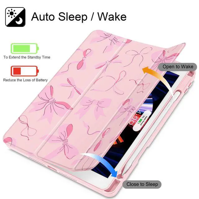 May Chen for iPad 9th Generation with Pencil Holder, iPad 8th/7th Gen Case 10.2-inch, [Penceil Holder] Trifold Stand Auto Wake/Sleep Clear TPU Protection Back Cover, Pink Bows P631