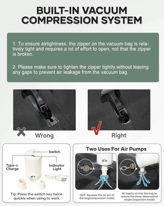 will you get: 1 vacuum backpack+1 electric vacuum pump (more efficient and labor-saving than manual pumps).