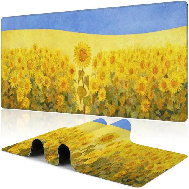 Field of Sunflowers Desk Mat,Large Sunflower Oil Painting Gaming Keyboard Mouse Pad,Non-Slip Rubber Base Desk Pad Thick Stitched Edges Waterproof Mousepad Mouse Mat 31.5"x11.8"
