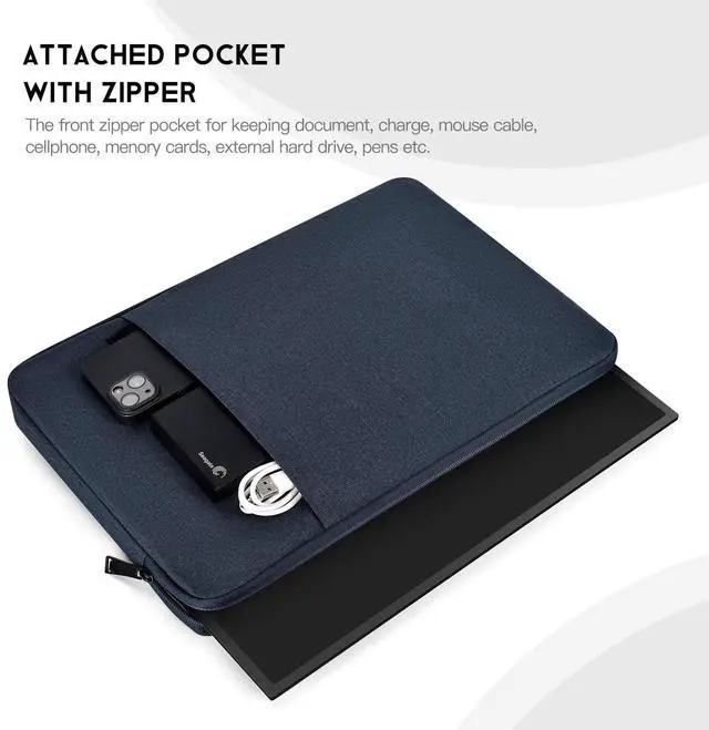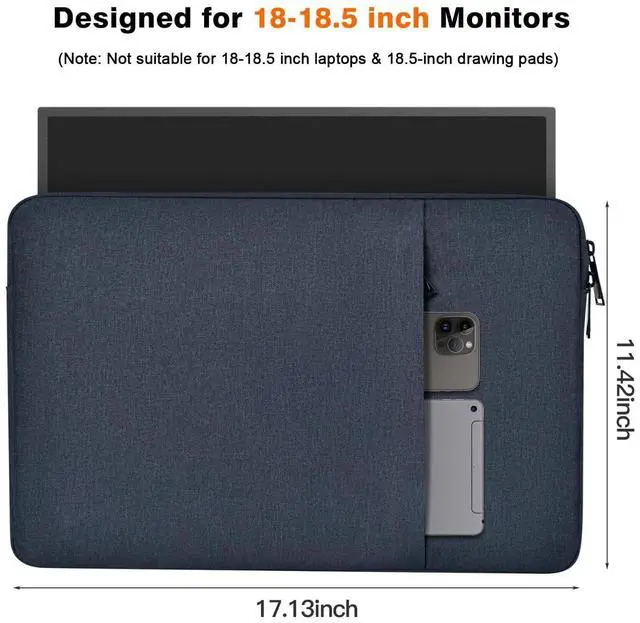 Dimensions-Interior Dimensions: 17.13 x 11.42 x 0.79 inch. Compact size and lightweight make it easy to carry and put into your backpack, handbags or laptop bag without taking much space. Suitable for family use and daily organization. ^^ Compatible- This 18 inch portable monitor case compatible with InnoView Ingnok Cocopar UPERFECT Upperizon Usparkle HONGO VisionOwl Bimawen 18.5 Inch portable display monitor. (NOT fit for 18- 18.5 inch Laptops & 18.5 -inch Drawing Pad) ^^ Quality Material-This monitor carrying case made of high quality water-resistant oxford, soft-touch suede interior and middle cushioning pad to protect the full body of your monitor from dust, dirt, scratch, bump, rainwater and splashing liquid. ^^ Enough Storage Space- Except the MAIN COMPARTMENT for your monitor, this monitor sleeve case bag also has ONE LARGE COMPARTMENT ON FRONT to keep small iPad, mouse, charger devices, power cord, cables, earphone, pens, hard drives, power bank etc. ^^ Portable & Lightweight- This 18.5 inch Monitor sleeve is SLIM AND LIGHTWEIGHT, can be easily slide into a briefcase, backpack bag, providing you with easy portability and convenient use! Perfect choice when going on holiday, business trip, travel, office.