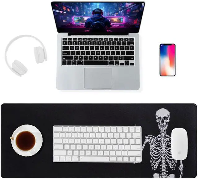 ALOANES Waterproof Mouse Pad with Durable Stitched Edge, XL Gaming Keyboard Pad, Non-Slip Rubber Base, Extended Desk pad for Gamer, Office & Home, Right Skeleton Mousepad 31.5''x 11.8''x 0.12''