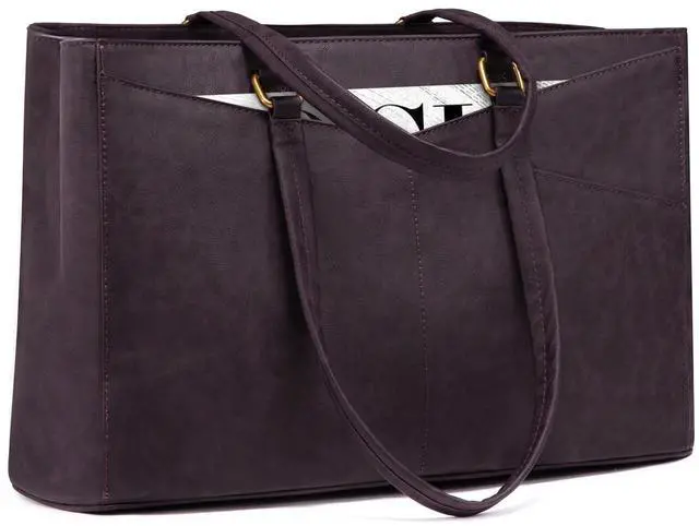 LOVEVOOK Women's Vintage Leather Work Tote, 15.6 Inch Laptop Bag, Waterproof Business Bag, Retro Purple