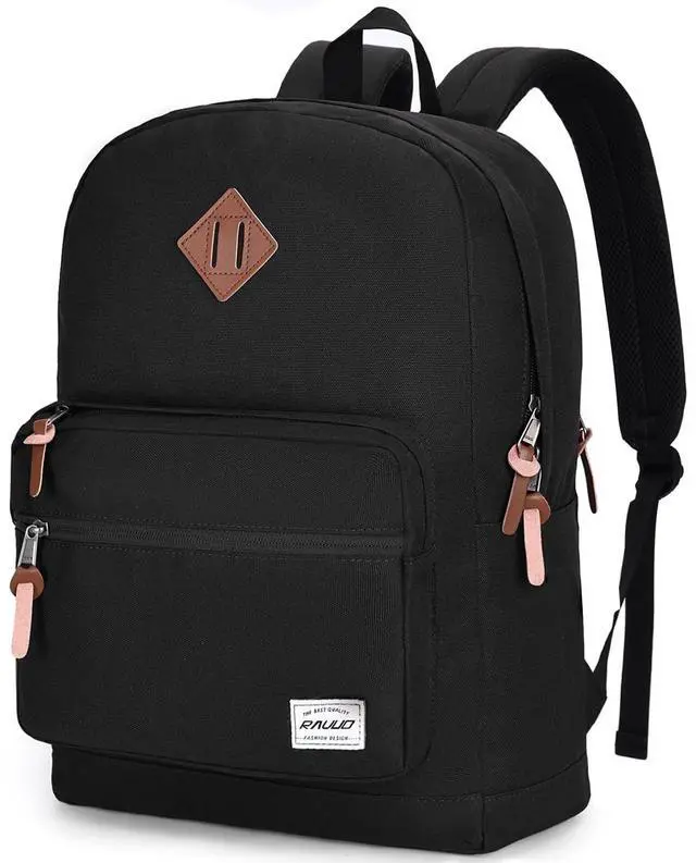 DURABLE & WATER RESISTANT: Ravuo black backpack is made of durable and water resistant polyester fabric which could ensure the backpack last for long and well organize your laptop and books. It's a unisex book bag that perfect for college, travel and so on. Recommended Age 3+Years.