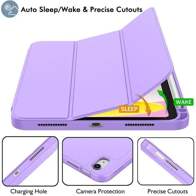 iMieet Case for iPad (A16)/iPad 10th Generation [11-Inch 2025/10.9 Inch 2022], Trifold Stand Smart Cover with Pencil Holder and Soft TPU Back, Supports Touch ID(Violet)