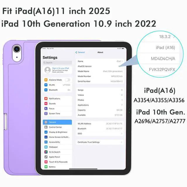 Designed for iPad (A16) 11-inch 2025 (Model: A3354, A3355, A3356),iPad 10th generation 10.9-inch 2022 (Model: A2696, A2757, A2777). Note: It will not be compatible other model. Please check your iPad model before purchase.