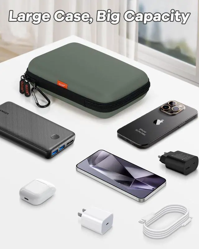 Compact Size, Easy Carrying - The external size of this army green travel case is 8.6"L x 5.7"W x 2.2"H inches, internal size is 8"L x 5"W x 2"H. Compact and lightweight design, portable for handholding, with carabiner for handing in your bag or put it into your backpack or briefcase. An essentials for travel, work and on the go ^^ High Capacity Electronic Case - This portable red carrying case was designed to be a universal compatibilty case, which can work perfectly as a gps case, portable external hard drive case, game drive case, power bank case, charger case, hard disk case, earbuds case, etc ^^ Hard Shell Protective Case - This hard travel case is made of hard shell eva material for shock resistance and high protection of your gadgets, bubble pad for scratch prevention, a elastic strap and double zippers to keep item in place without slipping off ^^ Tidy Storage, Electronic Organizer - This hard case is built-in inner mesh pocket for electronic accessories storage, elastic band to help you keep everything in place.
