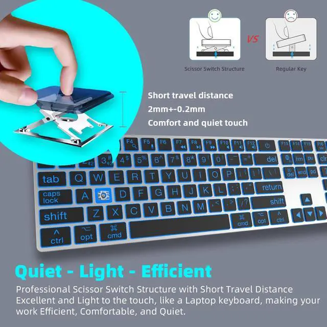 Friend focus on the research and production of keyboards over 35 years, It has mature production technology for scissor switch keyboard. The keyboard adopts the same scissor switch structure as high-end laptops to provide you with a quiet, sensitive and comfortable typing experience, it will be definitely quieter than your traditional keyboards. So that you can focus on your work or study late into the night without worrying about disturbing others ^^ Specially designed for the MAC OS systemBluetooth keyboard adopts the exact same standard layout as the Apple keyboard, thus perfectly replacing the Apple keyboard.