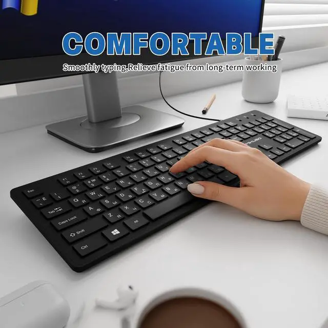 Efficient office work: The wired keyboard has 12 multimedia shortcut key combinations for instant access to music, volume, computer, email, and more.