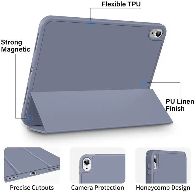 Features: This protective case for iPad 10th Gen case has a built-in stylus holder, which is convenient for you to store and access your Pencil, so that you don't have to worry about losing your pencils. The precise hole design makes the device fit perfectly, allowing you to use it with peace of mind. The built-in magnetic attraction of the iPad protective case makes it stand upright and stable, providing multiple angles, and easy viewing and writing modes anytime, anywhere. Intelligent automatic wake-up/sleep mode helps you save power and prolong lifespan. Colorful colors to choose as you like! ZKTUYU is worthy of your trust!