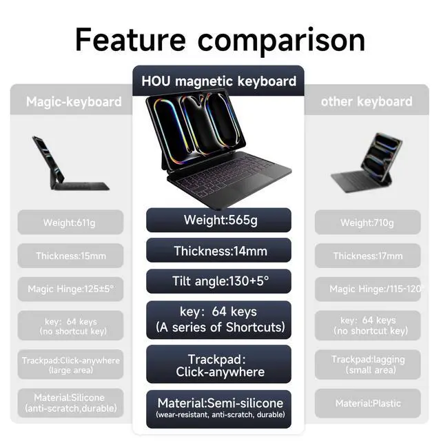Warning: Due to the magnet layout design of the iPad, it is only compatible with iPad Pro M5 2025/M4 2024.