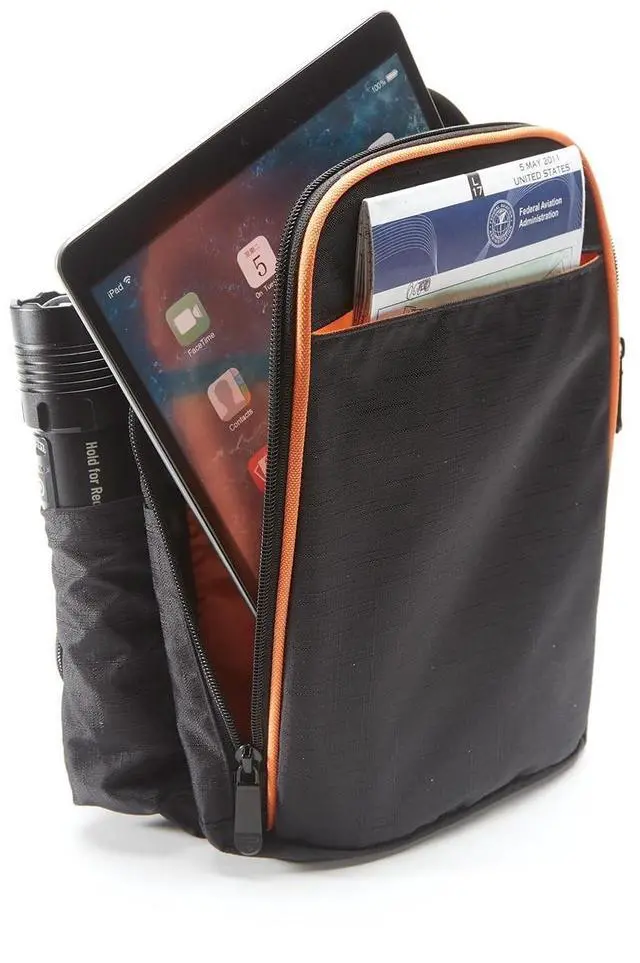 FLIGHT BAG: This slim bag is just right for new pilots, flight instructors, or any airplane where space is at a premium (we're looking at you, Cessna 152). Based on the best-selling Lift bag, the Lift Mini features a smaller design that will keep your most important gear organized and protected, including tablet laptop, headset, flashlight, and charging cables. Even with all the pockets filled, though, it still fits comfortably under a seat or on the floor so you can reach everything in flight. Signature orange interior makes it easy to find gear in the dark.
