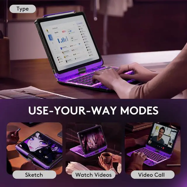 Precision Trackpad: Boost your iPad's functionality with a built-in wireless keyboard and precision touchpad for easy navigation and editing. Perfect for professionals, students, and creatives who need laptop-like control on the go.