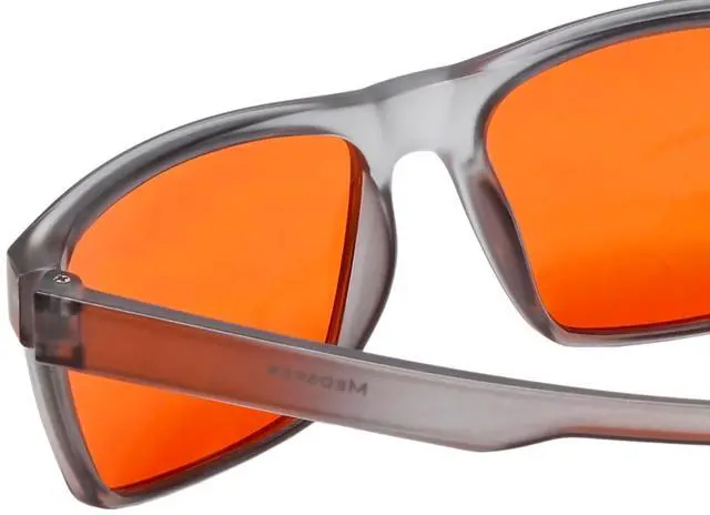 The unisex design suits both men and women, with a stylish rectangular shape and Dark Orange lenses. These migraine glasses are a fashionable and practical solution for light sensitivity, suitable for any occasion. Dark Orange lenses offer robust protection against LED lights, potentially minimizing damage from prolonged exposure to bright lights. These glasses are ideal for dental professionals and settings with intense LED lighting. The dark orange lenses are designed to potentially help minimize migraines and light sensitivity caused by fluorescent and blue light exposure. By blocking out blue light, they may provide potential relief for individuals who experience light sensitivity, migraines, headaches, and post-concussion symptoms.