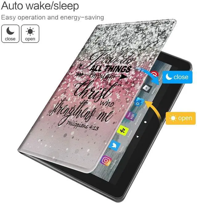 Product Features: 1. Shockproof & ScratchInner shock absorbing soft TPU and PU leather cases protect your tablet from scratches, dirt and grime etc. 2. Liberate your HandsSmart case backside folds become the perfect FaceTime and movie-watching stand, free your hands for other activities. 3. Precise CutoutFire HD 8 tablet case 2022 release precise cutout allows you to easily use all functions (buttons headphone jack speakers camera ). 4. Auto Wake/SleepAutomatically puts your tablet to sleep when closed, and wakes it upon opening for energy-saving. 5. Premium MaterialSlim cover for fire hd 8 2022 tablet Made of High end PU leather, protective smooth outer casing and sturdy exterior with soft microfiber interior keeps your tablet screen safe. 6. Durable and LightweightHigh quality tablet cover ensures long term use, super convenient to take it anywhere7. Fashionable Pattern DesignBVDIKMI provides you with a variety of bright and interesting protective cases suitable for kindle fire 8 case 12th generation.
