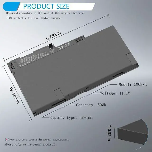FCC RoHSColor: BlackCompatible Part NumbersTo ensure compatibility, please cross check if the part number (located at the back of your original battery) is listed in the Fits Parts Number list. Ctrl + F to search the modelLaptop Battery replacement Compatible with HP 717376-001, CM03050XL-PL, E7U24UT, E7U24AA, CM03XL, CM03, 716724-421 BatteryCompatible Laptop ModelsLaptop Battery replacement Compatible with Laptop Battery replacement Compatible with HP Elitebook 740 G2, 745 G2, 750 G2, 755 G2, 850 G2, 755 G2. HP EliteBook Folio 9480m. HP Zbook 14. HP Elitebook 850 G1, 1040 G1 (See Description Fit Laptop Models) Buy with Confidence! 100% New from Pro-ManufacturerHigh QualityMore Professiona12-Month Warranty24 x 7 Email Support