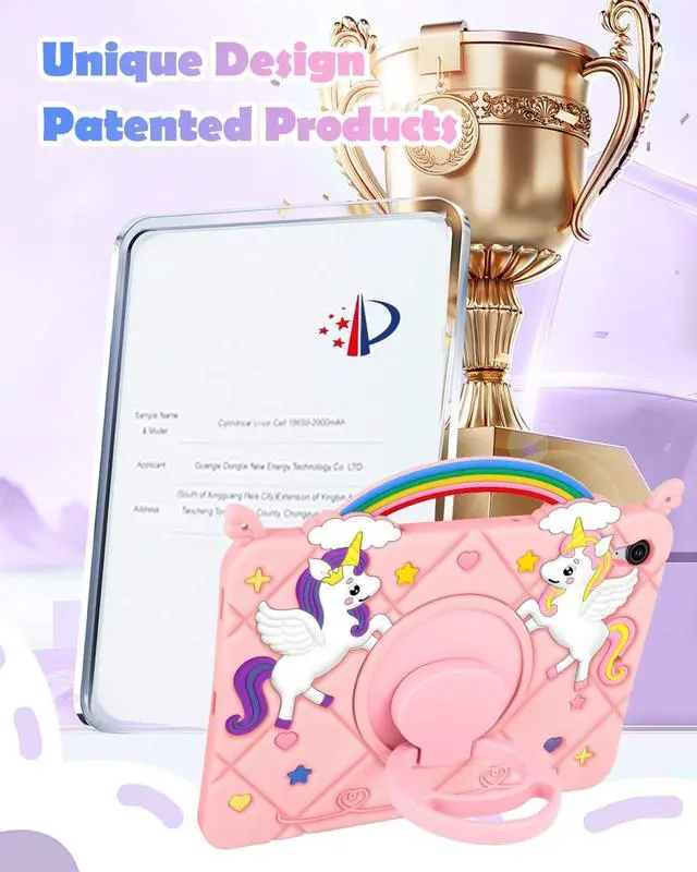 Uppuppy for Samsung Galaxy Tab S9 FE 5G Case 10.9 Inch - Cute Girls Kawaii Girly 3D Cartoon Teen Case with Rotating Stand & Strap Soft Silicone PK Unicorn Cover for S9 FE Tablet Funda