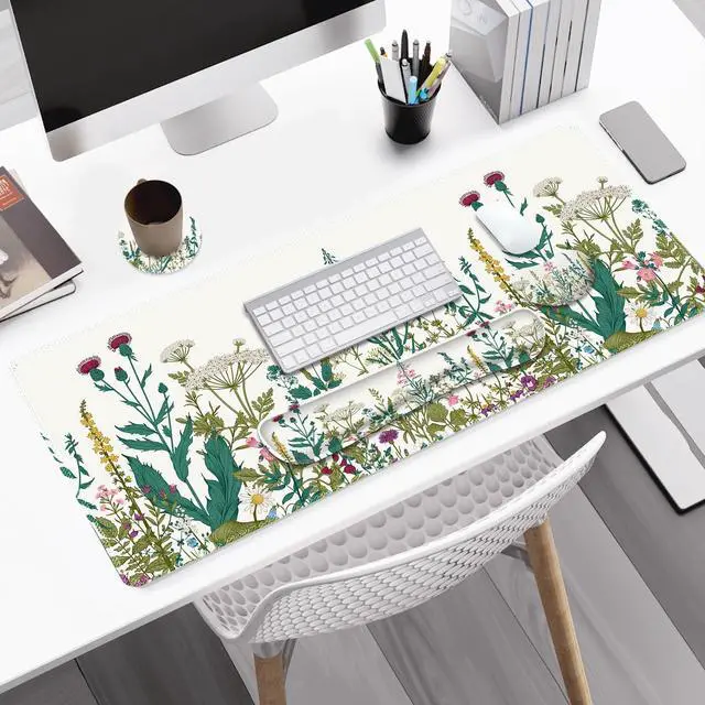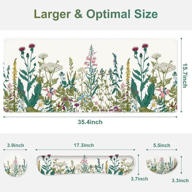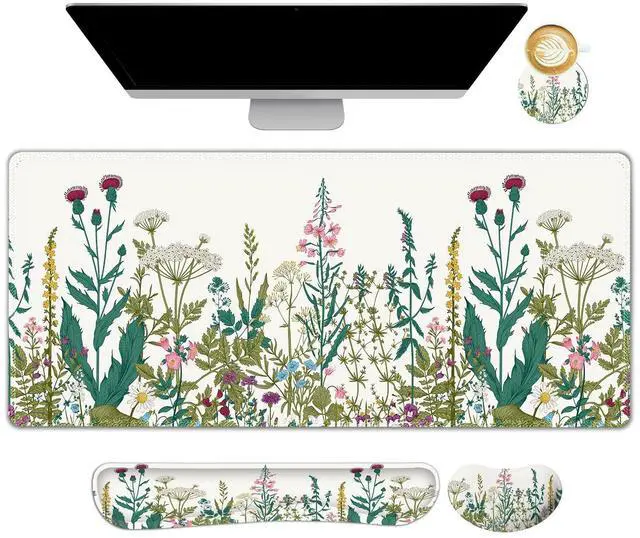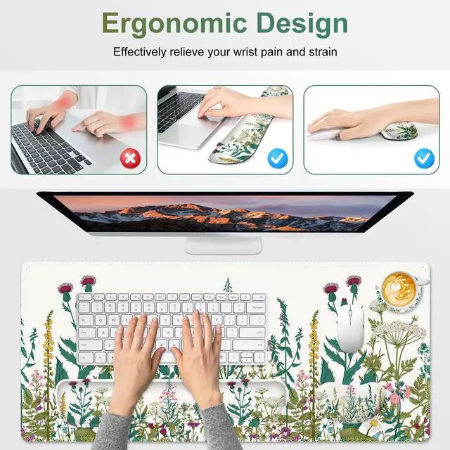 You deserve to have our comfortable typing relief mouse pad set 35.415. 7 IN Desk Mat + Keyboard Wrist Support + Mouse Wrist Rest + Coaster for DrinkMore unique pattern design desk pad set available for choice. A different mouse pad Will add some artistic personality to your life, unique style colors desk mat set will be a chic office desk decor and a good desk organizer, bring you a good mood, and increase work&study efficiency. This office desk accessories will be a wonderful gift for friends, family, classmates, and colleagueFeatures Wrist rest for computer keyboard and mouse with ergonomic design, filled with breathable memory foam materials, plays a role in minimizing discomfort and soreness from work and study.